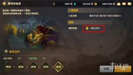 2、达到50级后,可以进入哥布林金库,每个号每天可以刷取35万金币。
