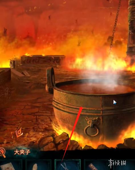 3、点击进入后方场景,点击拿走纸人手上的大夹子。