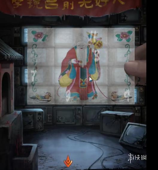 11、然后将珠子投入转生台,根据无字谶上的线索调整电视上的纸片位置,触发剧情,得到木偶娃娃。