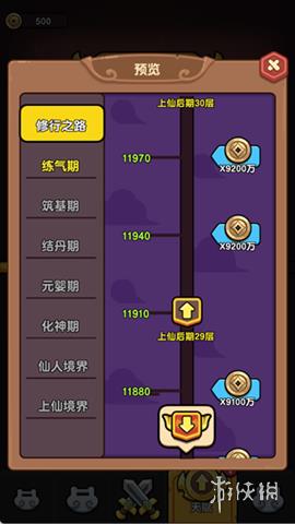 练气期、筑基期、结丹期等是游戏的核心成长线。玩家需要积累大量铜钱,并在前期专注于练气期的天赋升级,逐步解锁更高境界。