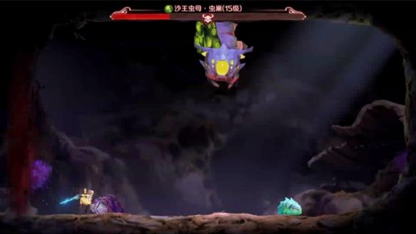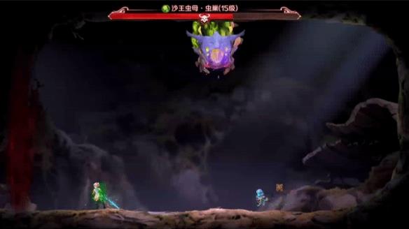 沙王虫母盘踞在虫巢的顶部,并会周期性地吐出5团粘液攻击目标,击中后造成持续的毒元素伤害,玩家需要优先击败刷新出来的毒岩甲虫,然后使用泰斯附身甲虫,爬到虫巢顶部,使用自爆技能炸毁虫母的防护,3次后可全部炸毁,虫母落地进入第二阶段。