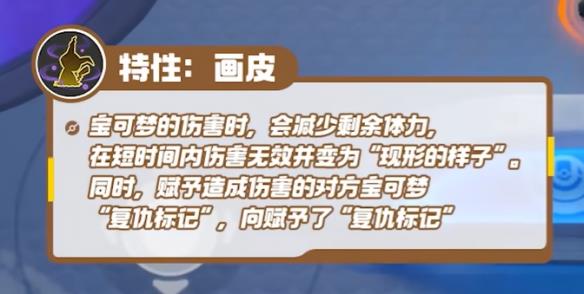 在化形的样子状态下受到来自对方宝可梦的伤害时,会减少利余体力,在短时间内伤害无效并为现形的样子;