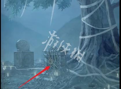 102、切换红色场景,然后点击第一页的大树,将照片放在藤蔓中间的凹槽处。