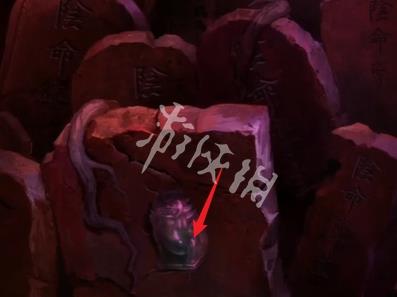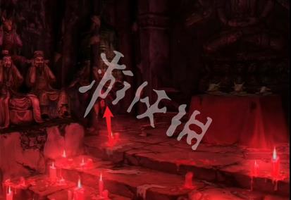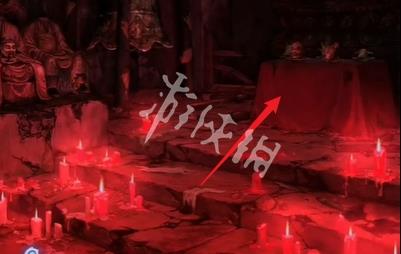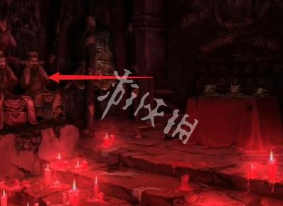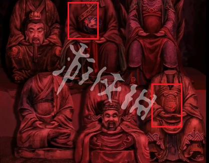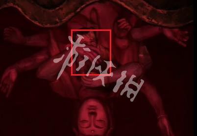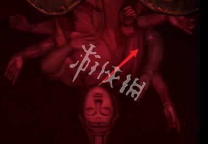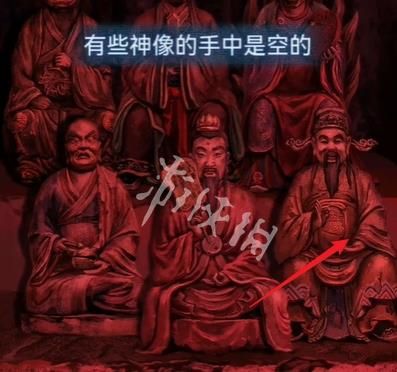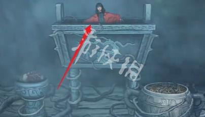 21、切换红色场景,然后点击箭头指向的位置可获得道具泥塑头像和酒葫芦。