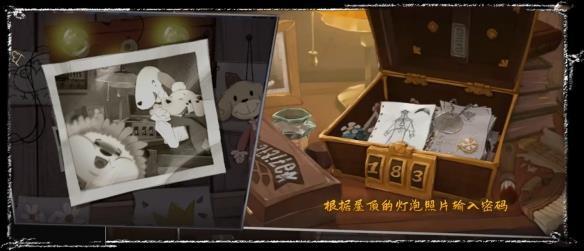 根据屋顶的照片线索,打开桌盒子的密码,获取【图纸】