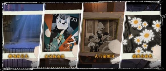 拍照,楼顶的月光,房间的海报,大厅的照片,楼梯外的花