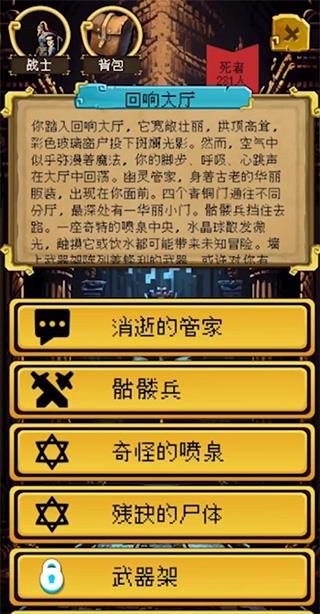 5、为了解决不同的陷阱选择不同的道具、使用二十面骰子绝杀敌人和陷阱,当然还有最重要的部分——死亡,每一次死亡都会让你向地下城的深处前进一步