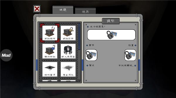 3、你可以点击提示,了解游戏中的玩法技巧,例如:怎样把锁破坏,强行开锁等等。