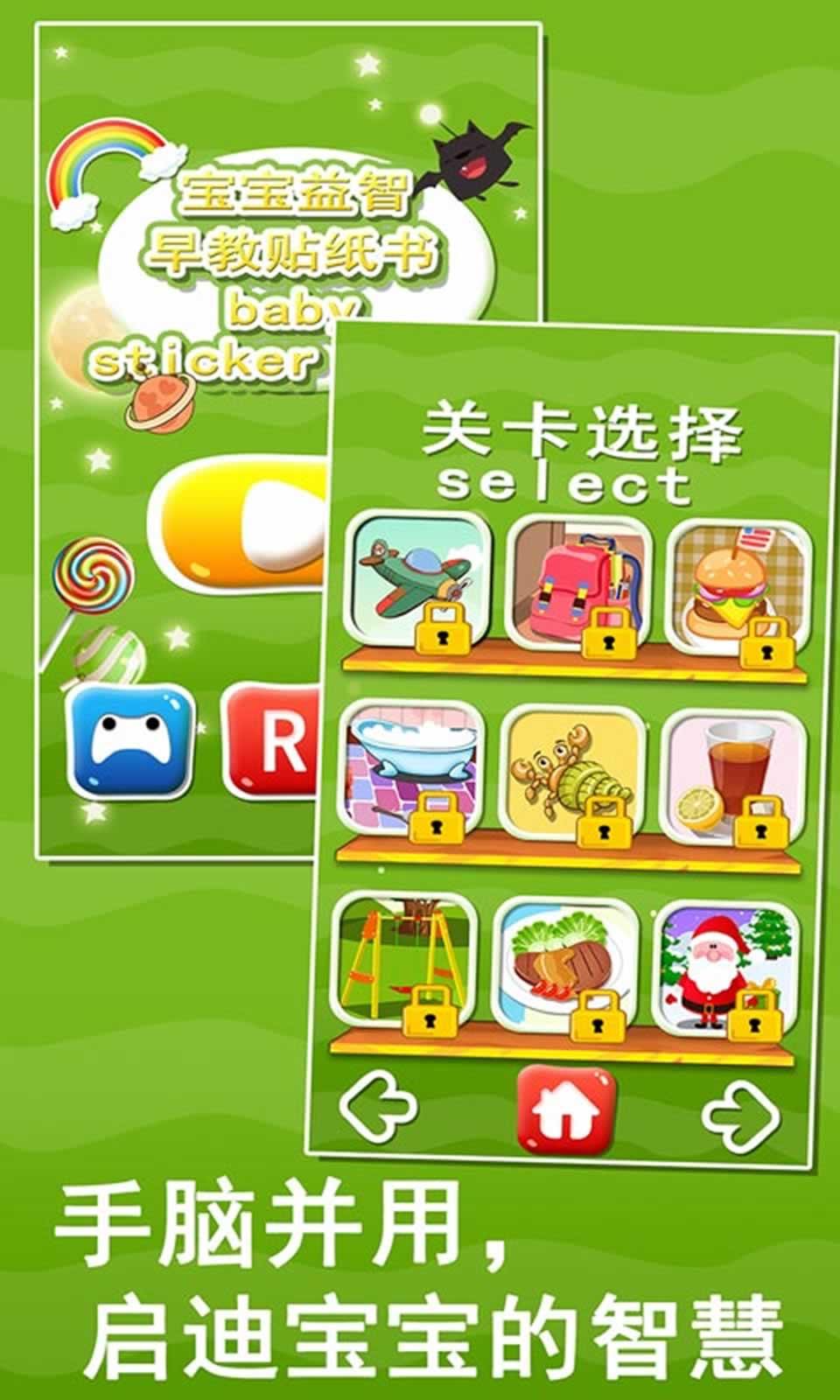 《宝宝益智早教贴纸书》是一款针对小孩和亲子活动而设计的贴图类儿童教育游戏,200多张儿童喜爱的卡通小贴纸,能让儿童玩卡通贴纸的同时学认字、英语单词、字母、陆地动物、海洋动物、小鸟飞禽、儿童玩具、儿童食物等生活用品。适用于2岁、3岁、4岁6岁、幼儿圆小班、中班、大班的的小孩,小朋友只需触动手指,动动脑筋、就可以把漂亮贴纸放到正确的位置啦,通过手眼协调促进宝宝智力发育和动手能力。