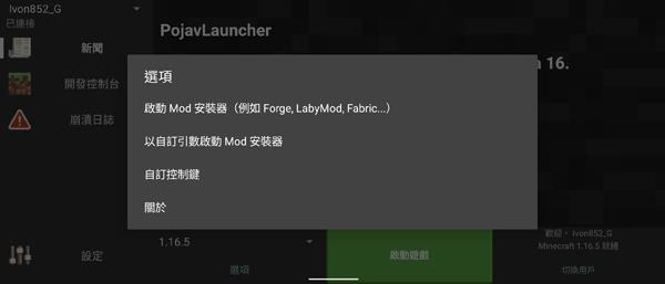 或者安装Optifine: 按「启动游戏」旁边「选项」,选取下载的optifine.jar档案,再开启虚拟滑鼠,像电脑一样安装,之后再关闭视窗。