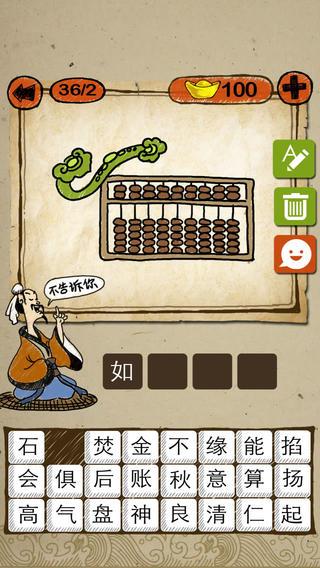 中华成语千千万,你知道但不一定能猜到!不服就来猜猜看!用一幅画或几个字的组合来猜一个成语,巧妙的图与字的结合,让你苦思冥想后恍然大悟,开怀一笑!既可以愉悦心情,又可以训练思维,绝对是老少皆宜的文字游戏佳品!需要网络放心下载免谷歌商店