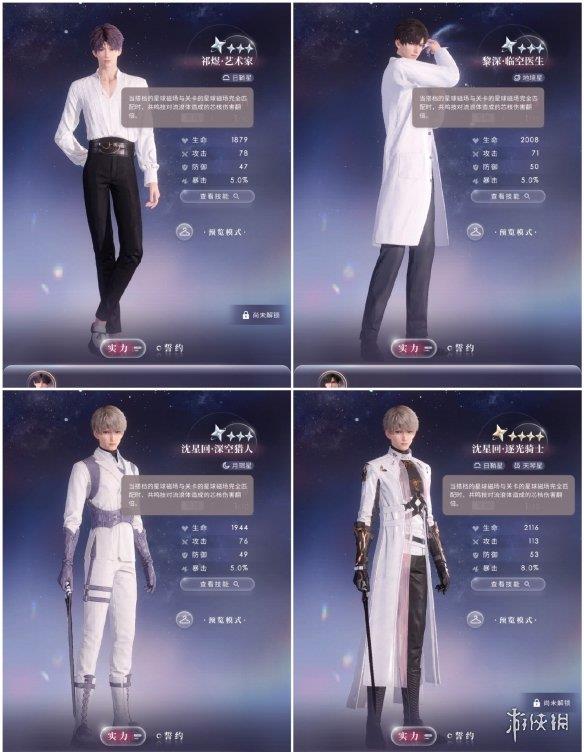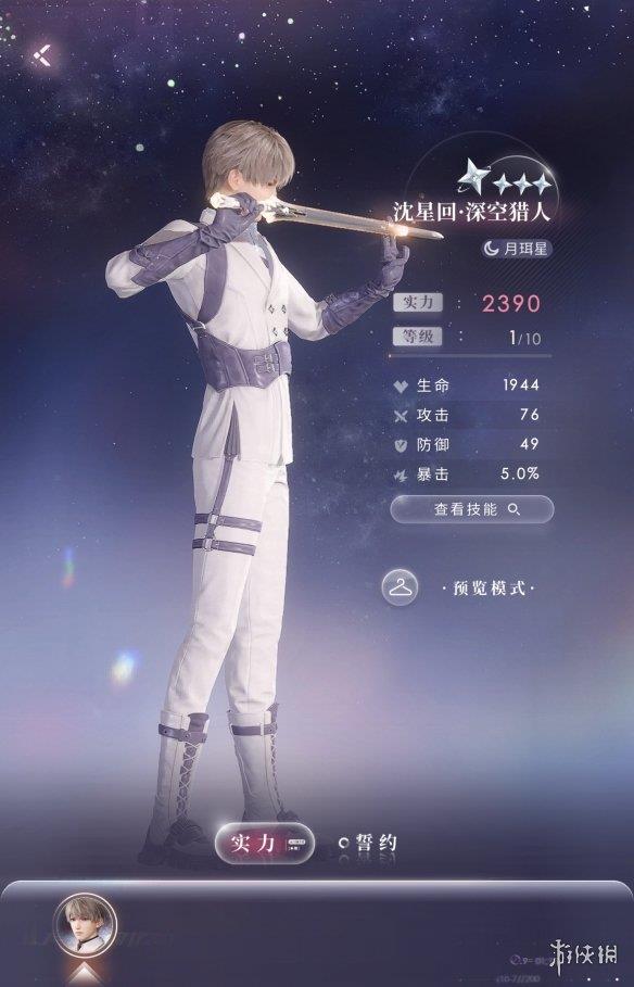 以沈星回为例,五星逐光骑士与四星深空猎人套装相比较: