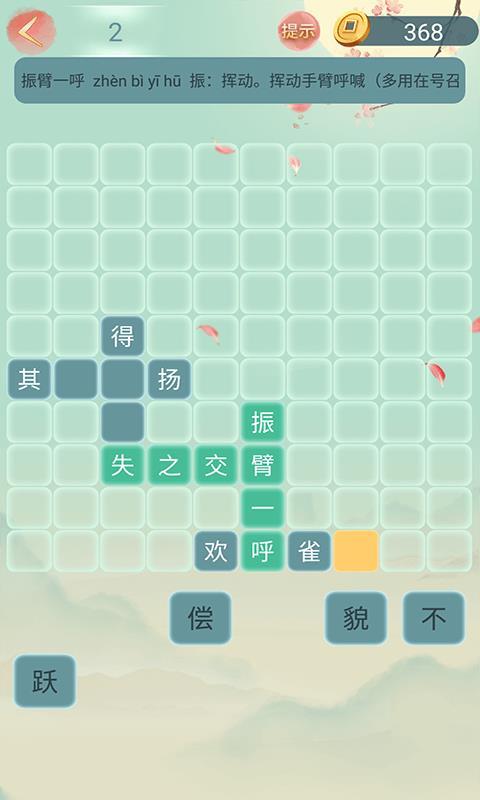 成语大接龙是一款益智休闲游戏,关卡里全是成语,边玩边学很有意思。游戏里有多种玩法,比如成语接龙、成语答题、看图猜成语等,适合各种玩家体验。