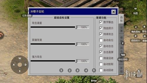 3、进入游戏可以设置攻击速度、强力攻击、自动回收、自动拾取等功能。