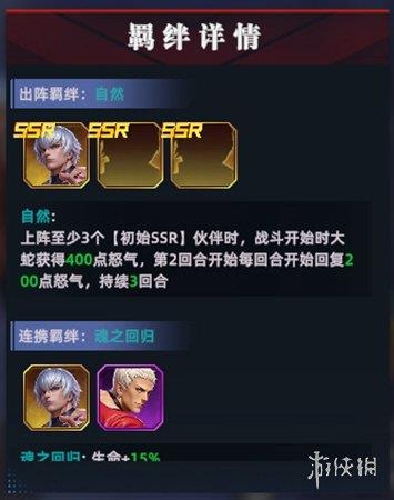 激活大蛇的羁绊条件颇为严苛,需同时上阵另外两个SSR品质的同伴,然而一旦达成条件,收益巨大。