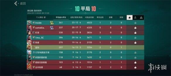 7、完成对决之后就会有【对局统计】,每一局的表现都会有详细的数据统计,可以在对局结束之后查看。