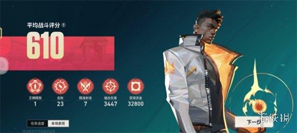 8、最后我们还可以看到自己的表现,会进行统计,查看完之后我们就可以点击【下一步】重新回到大厅重新开始匹配对决。