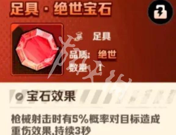 2、宝石效果:枪械射击时有5%概率对目标造成重伤效果,持续3秒。