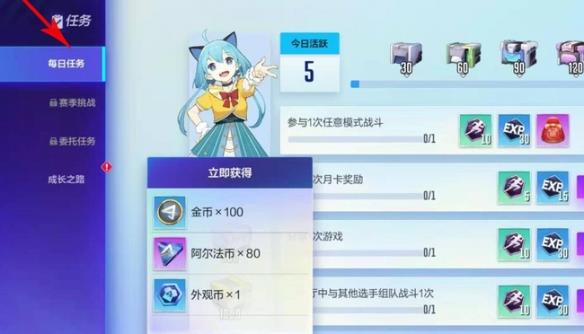 3、完成日常任务,获得活跃宝箱可获得金币。