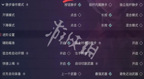 1、静步设置:选择摇杆内圈静步,轻推摇杆实现静步移动,大幅拉动则触发疾跑。