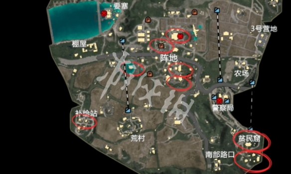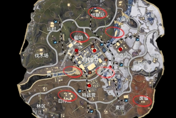 地图中心区域阵地刷特劳斯的地方。
