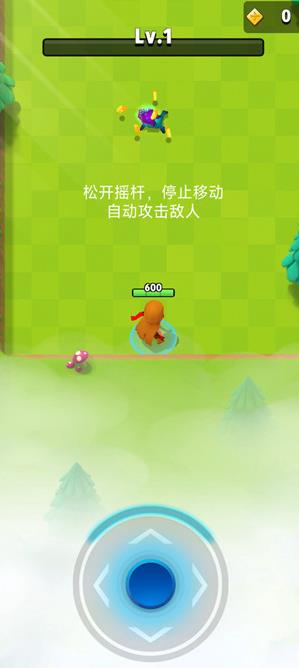 3、松开摇杆角色就会停止移动,并且自动攻击敌人。