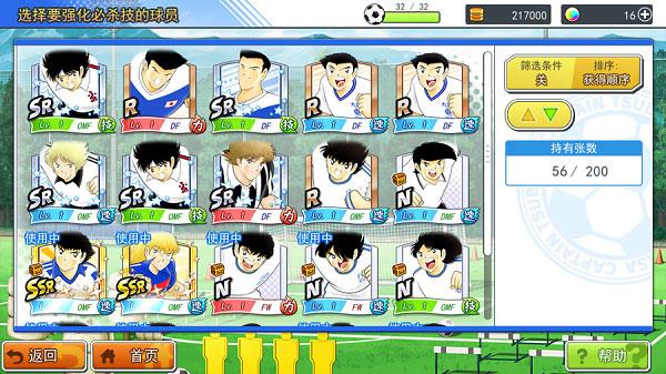 点击必杀技强化可以查看当前所拥有的所有球员卡牌,并进行选择,已经上场的球员会在左上角显示使用中字样哦~各位队长不要强化错球员咯。