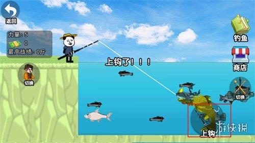 4、等到有小鱼上钩之后,需要快速的点击屏幕右下角的【上钩】按钮。