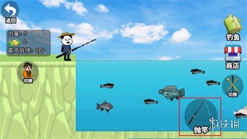 3、此时需要点击屏幕右下角的【抛竿】按钮,以将自己的鱼饵投入到水中。