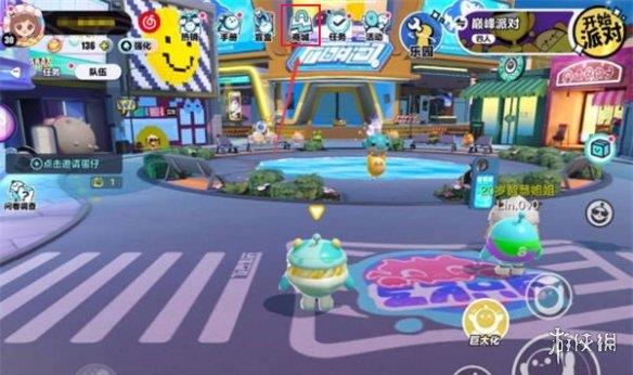 7、核心玩法入口位于主界面右上角,点击圆形按钮【开始派对】进入模式选择,方形按钮提供【休闲】/【巅峰】双选项(巅峰模式含排位积分,休闲模式无)。