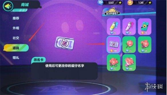 2、在商城页面切换至【道具】分类,查找并选择【改名卡】道具,支持直接购买或向好友索要,购买后可自用或赠与他人,使用道具后立即触发昵称修改界面。