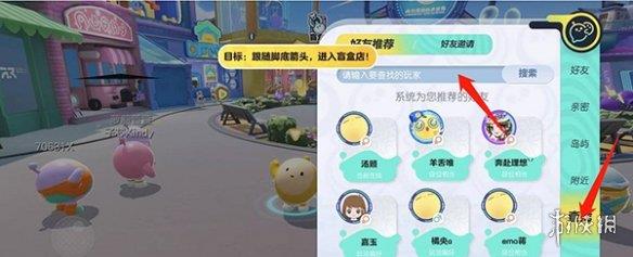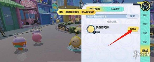 2、进入好友界面后点击查找按钮,在搜索栏输入目标玩家昵称并确认搜索。
