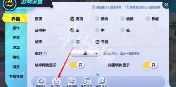 3、进入设置界面后,选择下方的【用户中心】。