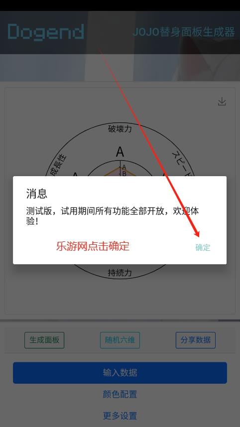 jojo替身面板生成器怎么弄1、查看jojo替身面板生成器ogend官方消息以后,点击确定进入。