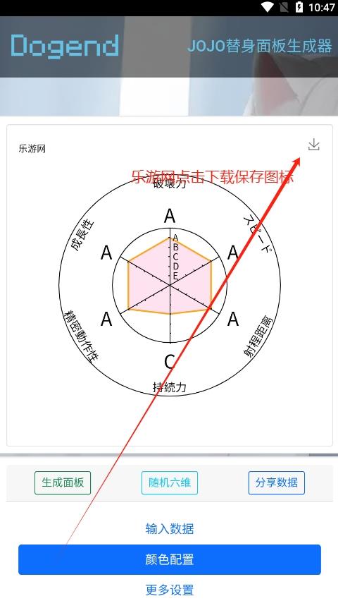 4、接着返回替身面板部分,点击绿色字样的生成面板,生成你的专属jojo面板,如果想要自定义更多数据配置的话,建议在颜色配置和更多设置中完成以上选择。