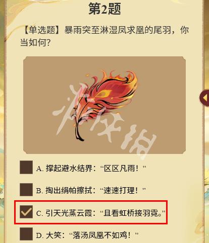 问题:暴雨突至淋湿凤求凰的羽毛,你当如何?