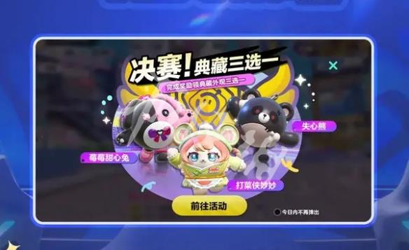 8月9日-14日,完成活跃任务,即可从典藏外观失心熊莓莓甜心兔打菜侠妙妙中三选一免费领取。
