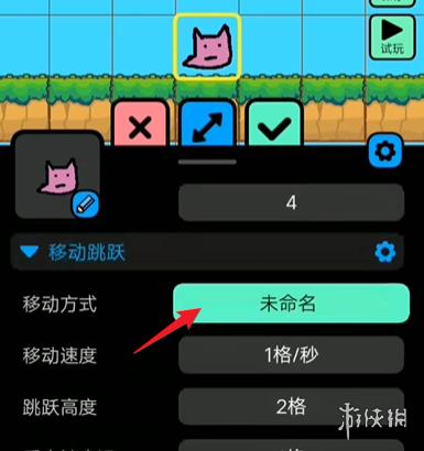 2、然后进入图中的角色设置页面,并点击移动跳跃下方的移动方式。