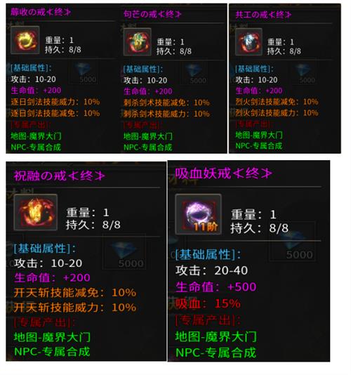 1、副装戒指可别小瞧了,通过专属合成,消耗钻石提升它的等级,技能威力会大幅增强。原本伤害平平的技能,经过强化后,直接变成杀敌利器,一套技能下去,敌人非死即伤。同时,吸血属性也会增加,打怪时就像拥有了一个移动的血库,源源不断地补充生命值,让你在战斗中越战越勇。