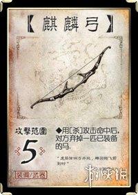 这是忠臣的神器,远离目标的人可以借此迅速构成威胁,当队友孙尚香装备马时,你也可以用麒麟弓弃掉她的马来给她两张牌。