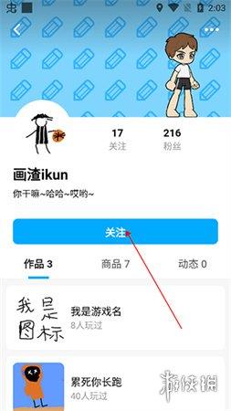 4、最后,点击关注按钮,你便可以查看好友的动态,并游玩他们的作品了。
