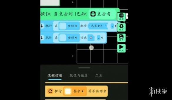 2、随后对按钮进行脚本编辑,当玩家点击签到按钮后,签到天数 1,并且在玩家的位置显示已签到字样。