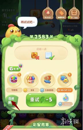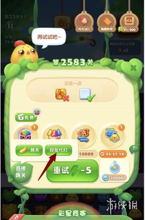 开心消消乐怎么求助好友1、遇到难关无法独自通过时,点击屏幕右下角的按钮直接选择跳关。