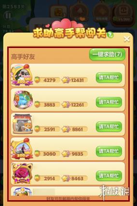 3、在打开的界面中,挑选想求助的朋友,点击请TA帮忙即可请求好友助力闯关。
