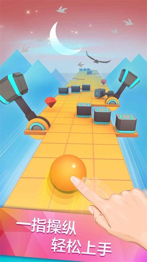 操作仅需手指左右移动小球,无需跳跃、下蹲等复杂操作,关卡难度逐步提升,后期会出现更多复杂障碍物,考验玩家的反应与手速。