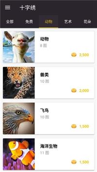 5、在游戏首页,玩家可以选择各种类型的十字绣进行创作。