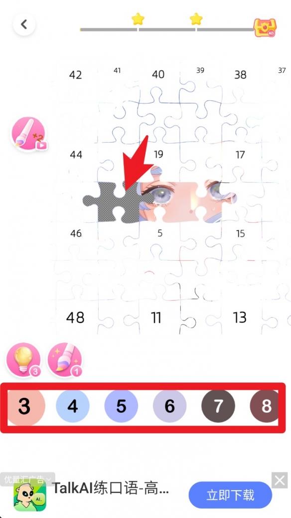 2、在拼图界面根据下方的颜色编号选择对应色块,点击并放置到正确的拼图位置完成涂色。