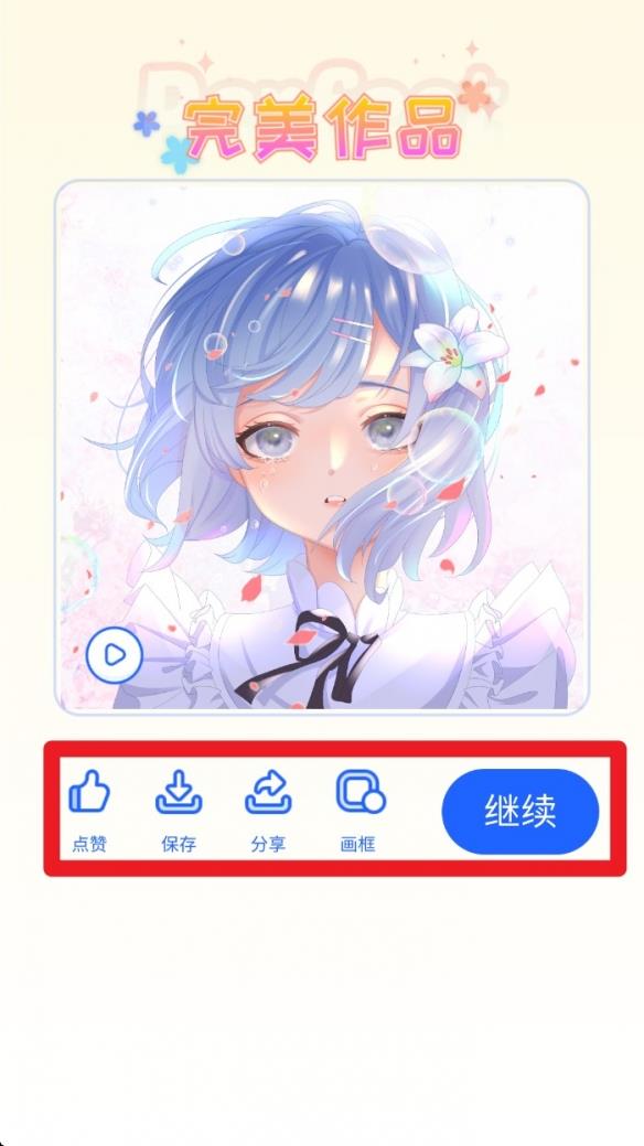 3、完成拼图后可在成果页查看完整作品,点击下方按钮可点赞、保存、分享或添加画框。