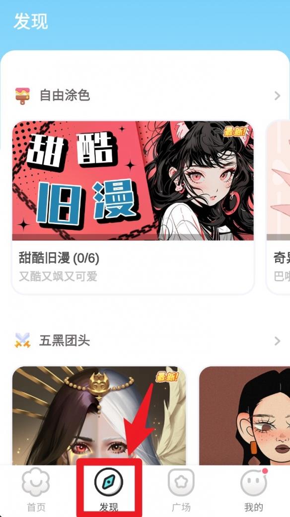5、进入广场页面,点击右下角加号按钮,上传或创建你的自由涂色作品并分享给大家。