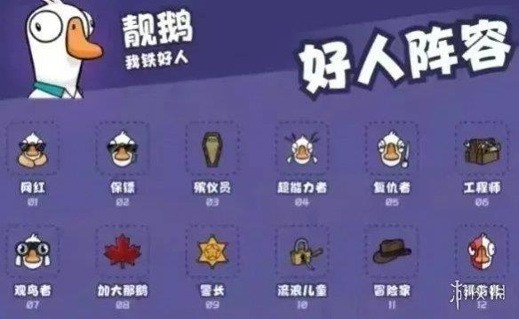 以上便是好人阵营鹅的所有身份,部分角色完成指定任务可获得奖励,奖励为游戏结束后给予的金币,可用于购买装扮。
